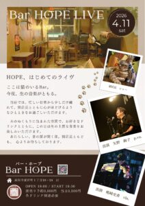前売り予約¥3,500(drink別途) ※当日¥4,000
