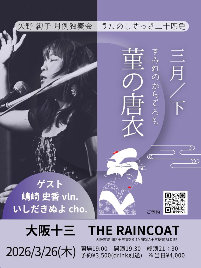 3/26矢野絢子 大阪レインコート月例独奏会 うたのしせっき二十四色 三月(下)「菫の唐衣」